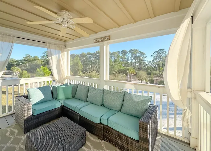Sandy Dune Retreat Perdido Key villa is located 1.4 miles from Perdido Key Beach and provides snorkeling, bowling, and mini golf for active guests. This Pensacola villa is located about a 10-minute drive from Perdido Bay Golf Club and offers guests to relax in a Jacuzzi bath and a hot tub available on site.